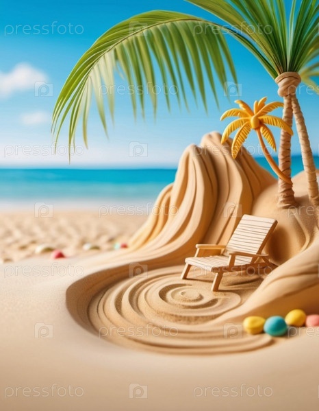 Спокойная пляжная сцена с мягкими волнами, песчаным берегом и пальмами, отбрасывающими тени. Яркие цвета и мягкие мазки создают умиротворяющую атмосферу. Сгенерированный ИИ. Путешествия на солнечном пляже