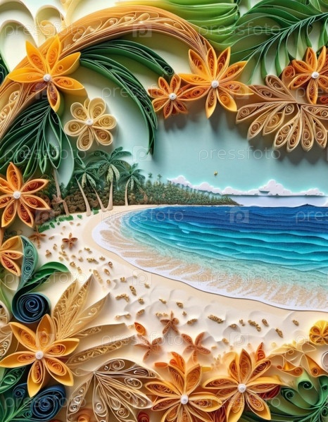 Спокойная пляжная сцена с мягкими волнами, песчаным берегом и пальмами, отбрасывающими тени. Яркие цвета и мягкие мазки создают умиротворяющую атмосферу. Сгенерированный ИИ. Путешествия на солнечном пляже