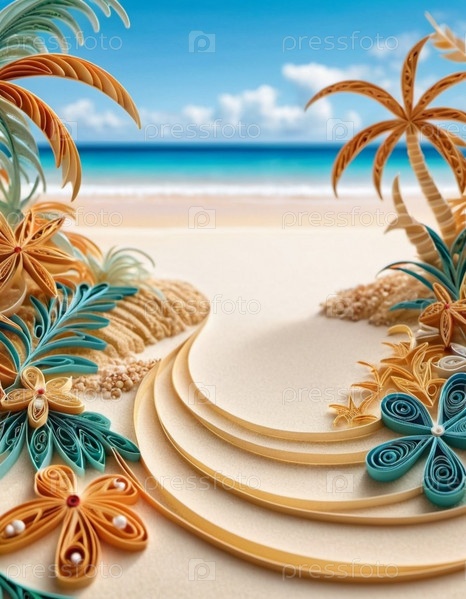 Спокойная пляжная сцена с мягкими волнами, песчаным берегом и пальмами, отбрасывающими тени. Яркие цвета и мягкие мазки создают умиротворяющую атмосферу. Сгенерированный ИИ. Путешествия на солнечном пляже