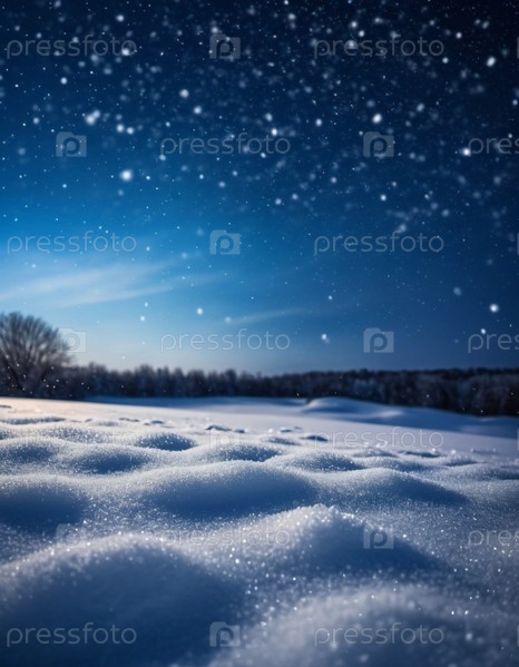 Рождественский закатный пейзаж, покрытый белым снегом. Чудесный зимний лес. Новогодняя рождественская атмосфера. Праздничная и очаровательная зимняя страна чудес. Снежинки, сугробы и холмы. Сгенерировано ИИ
