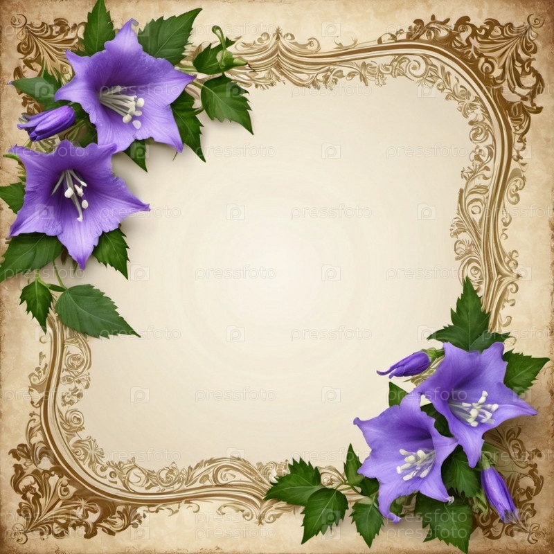 Чистый лист бумаги, окруженный рамкой из фиолетовых или синих колокольчиков. Цветы, расположенные вокруг бумаги, создают естественную красивую границу. Фон или шаблон для различных целей, пространство для копирования