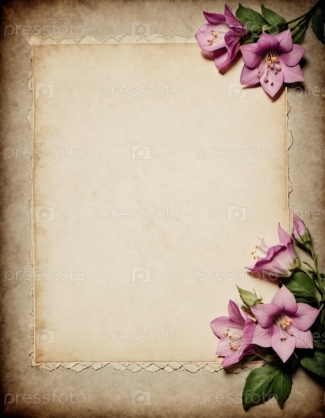 Чистый лист бумаги, окруженный рамкой из фиолетовых или синих колокольчиков. Цветы, расположенные вокруг бумаги, создают естественную красивую границу. Фон или шаблон для различных целей, пространство для копирования