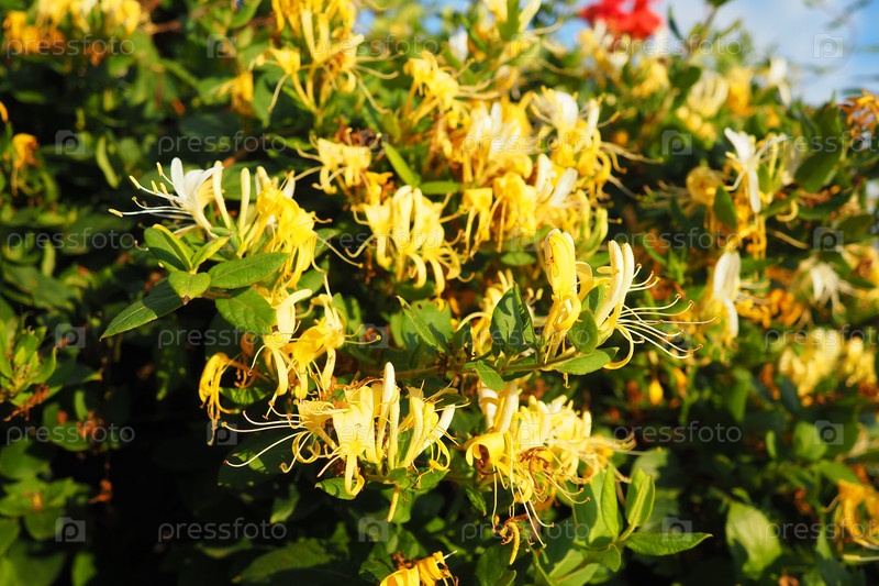 Lonicera japonica, японская и золотисто-серебристая вид лиственницы, произрастающий в Азии. Декоративное растение, используемое в традиционной китайской медицине. Цветы белые, желтые