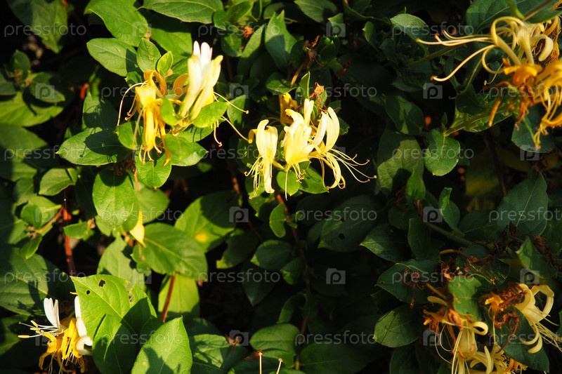 Lonicera japonica, японская и золотисто-серебристая вид лиственницы, произрастающий в Азии. Декоративное растение, используемое в традиционной китайской медицине. Цветы белые, желтые
