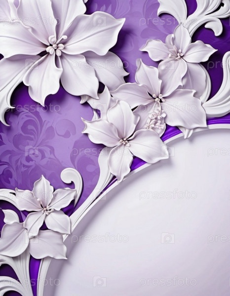 Рамка с сиренными цветами в стиле роко-барокко. Нежные сиренные цветы, листья из нежного пастельного фиолетово-белого цвета. Изображение передает сложные детали цветов, демонстрируя нежную красоту. AI