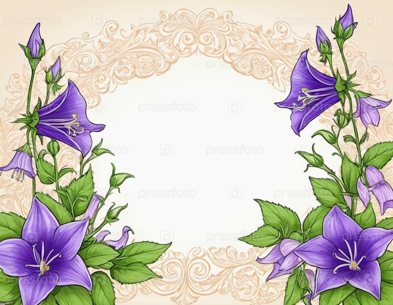 Чистый лист бумаги, окруженный рамкой из фиолетовых или синих колокольчиков. Цветы, расположенные вокруг бумаги, создают естественную красивую границу. Фон или шаблон для различных целей, пространство для копирования