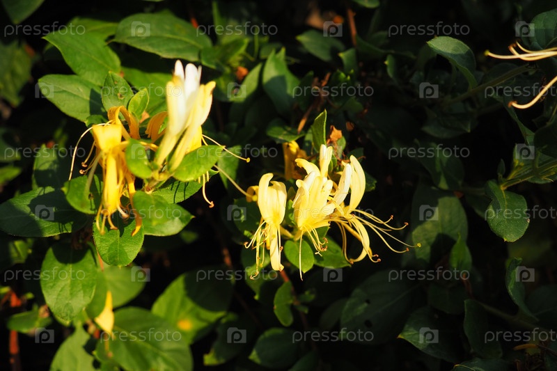 Lonicera japonica, японская и золотисто-серебристая вид лиственницы, произрастающий в Азии. Декоративное растение, используемое в традиционной китайской медицине. Цветы белые, желтые