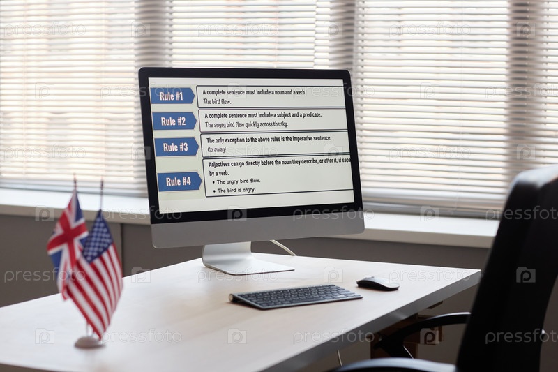Правила грамматики английского языка, отображаемые на экране компьютера в классе