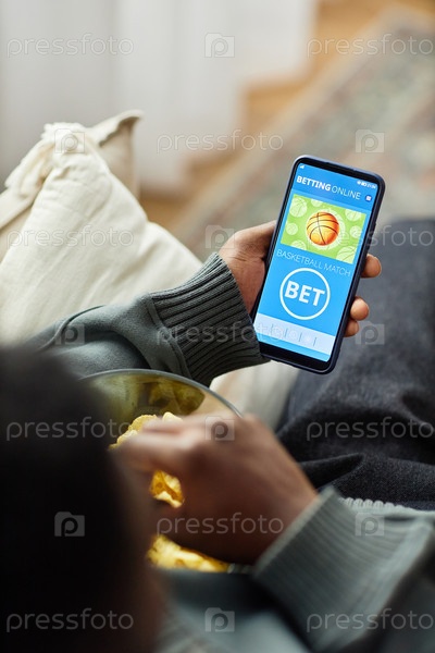 Черный мужчина держит телефон с приложением для ставок на спорт