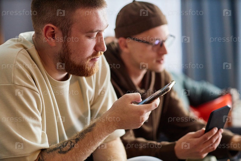 Закрыть бородатый спортивный фанат, держащий телефон Проверка игры Обновления онлайн