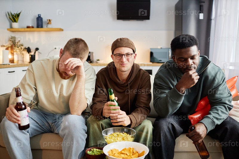 Друзья сидят на диване и смотрят телевизор