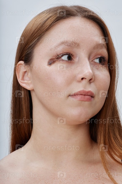 Портрет молодой женщины с родинкой на лице в студии Candid