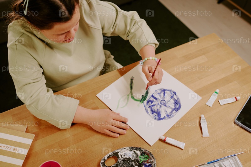 Девочка с инвалидностью рисует цветок на бумаге