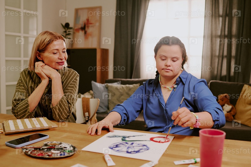 Зрелая мать смотрит, как ее дочь рисует