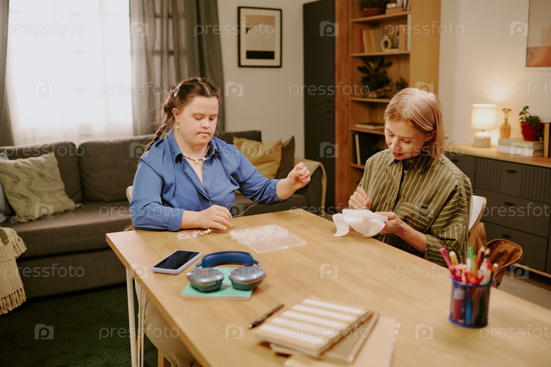 Мамочка и дочь с инвалидностью изготавливают бусы и вышивают маму