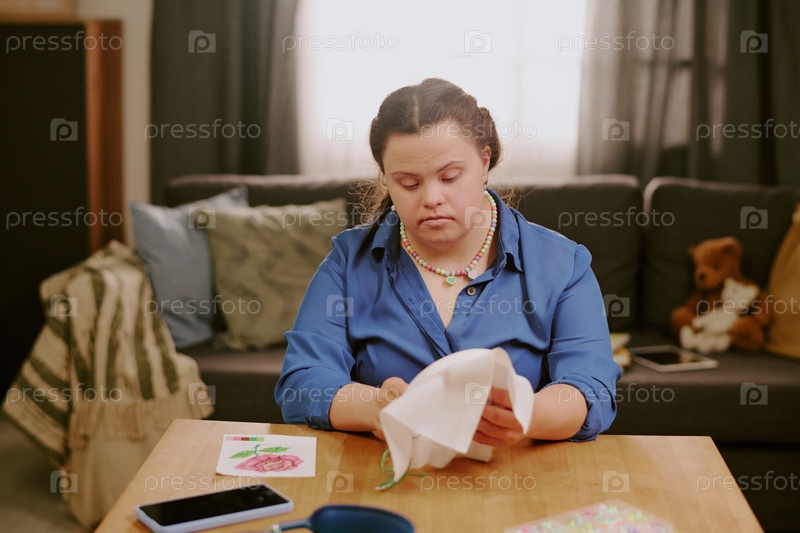 Женщина с синдромом Дауна вышивает