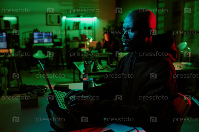 Африканский американец, работающий на ноутбуке