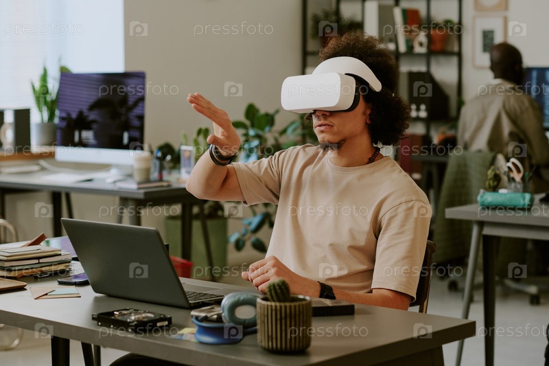 Человек тестирует VR-гарнитуру во время рабочего дня