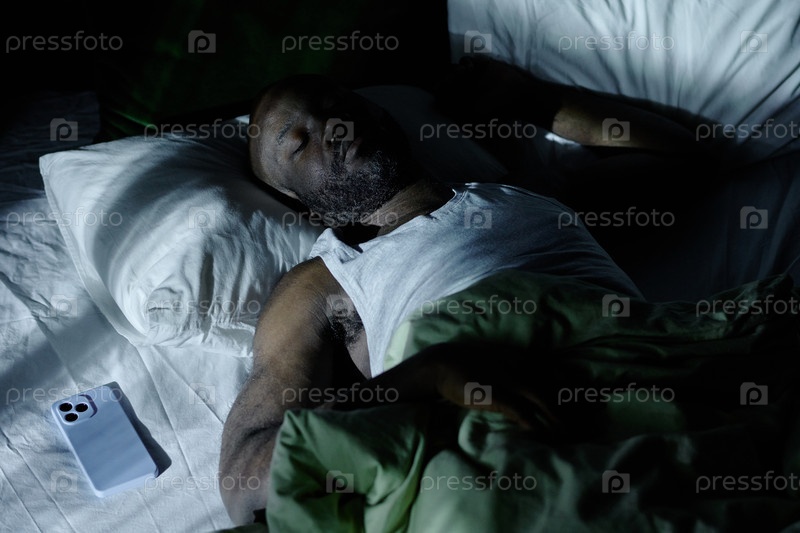 Африканский американец спит в кровати