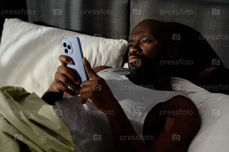 Человек, использующий смартфон в постели