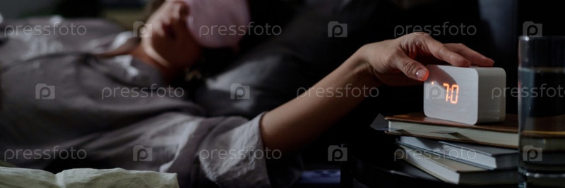 Заголовок с Женщина, останавливающая будильник