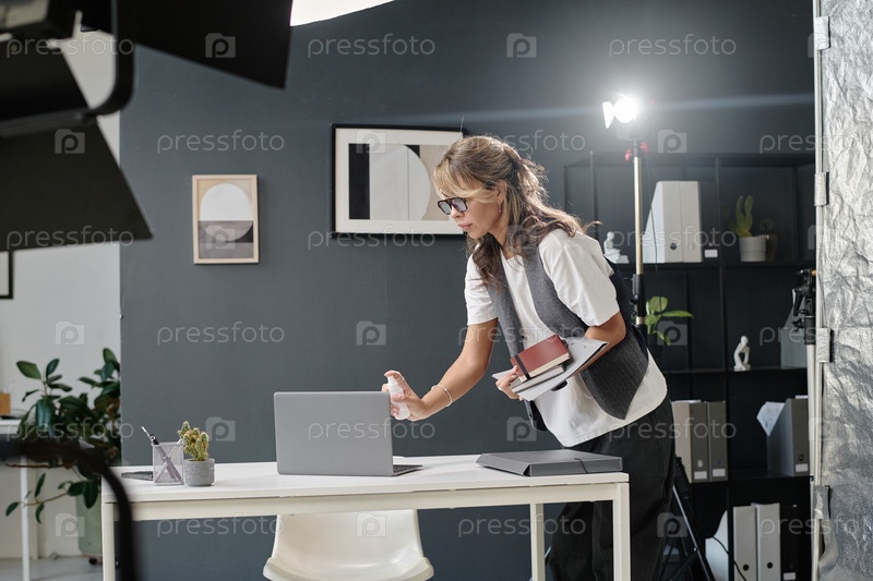Женщина уборка рабочий стол