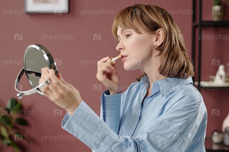 Профиль женщины, применяющей блеск для губ