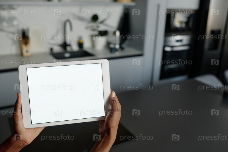 Женщина, держащая планшет в кухонной зоне