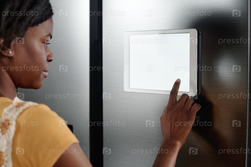 Женщина, устанавливающая умный холодильник