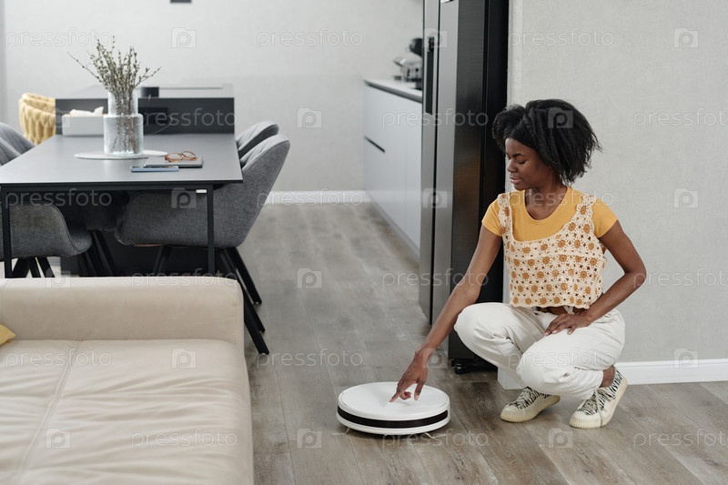 Женщина, включившая робот-вакуум