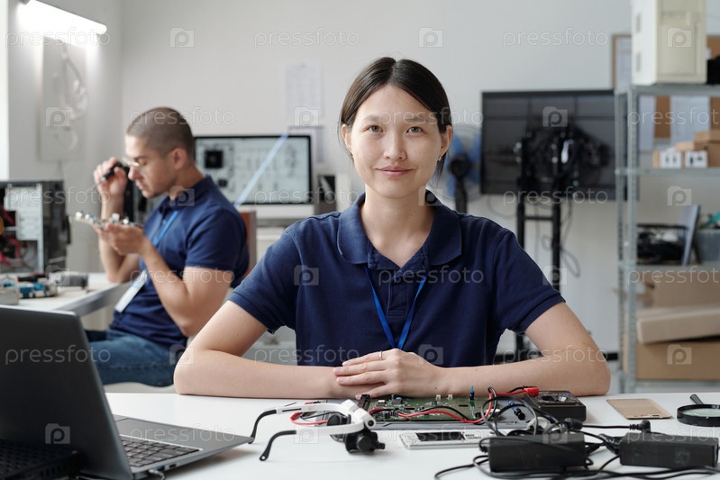 Портрет женщины, улыбающейся в технологической лаборатории