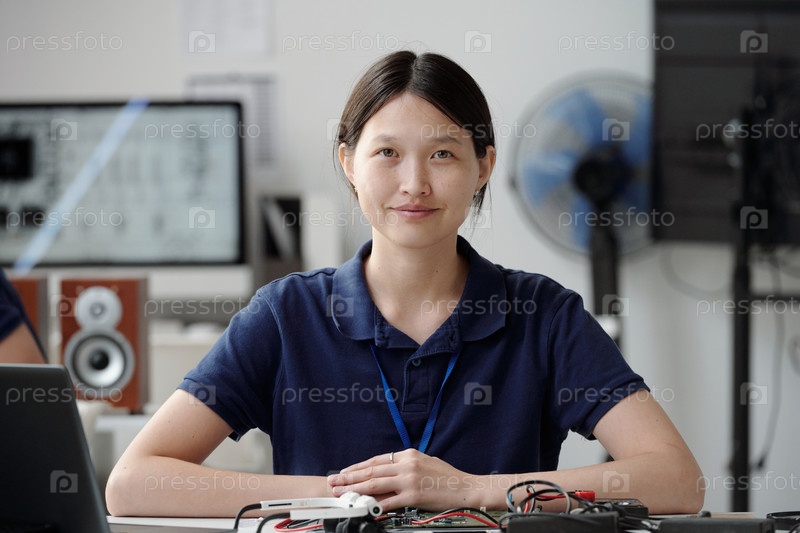 Портрет азиатской женщины, работающей над электронным проектом