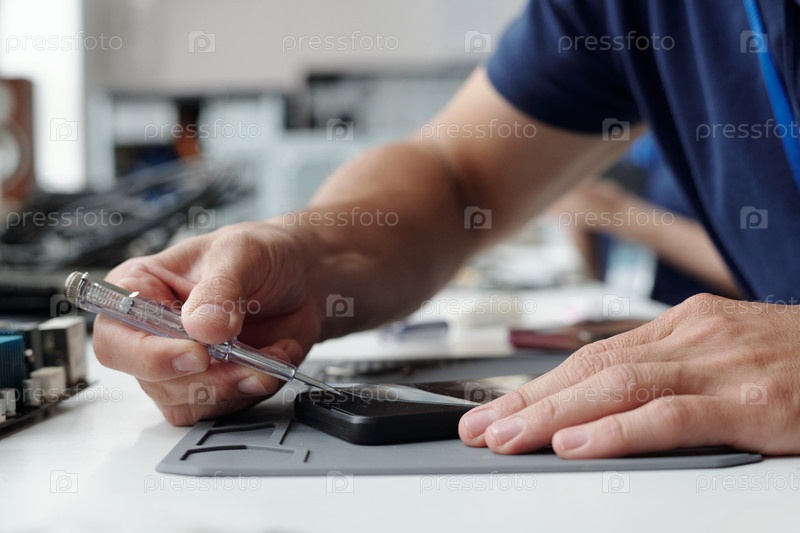 Ремонт смартфонного устройства с помощью прецизионных инструментов