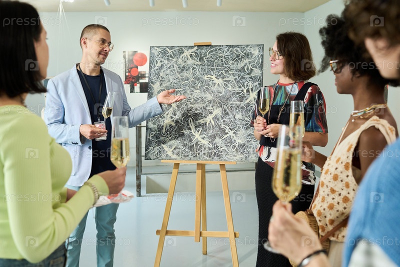 Человек, указывающий на картину на эстафете