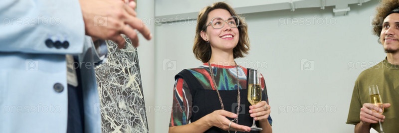 Посетитель vernissage с напитком