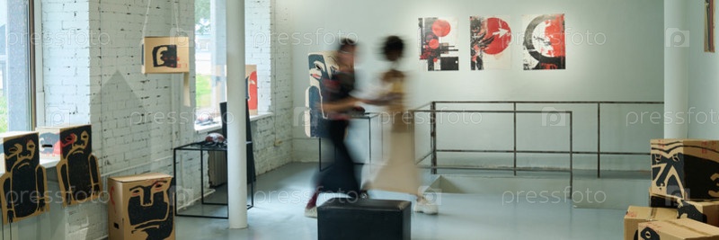 Размытое движение посетителей художественной галереи