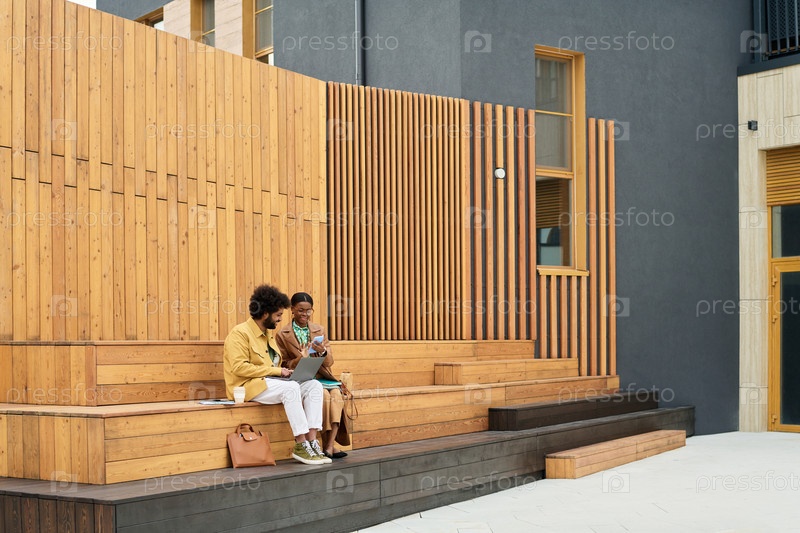Участие в разговоре о деревянных ступеньках за пределами здания