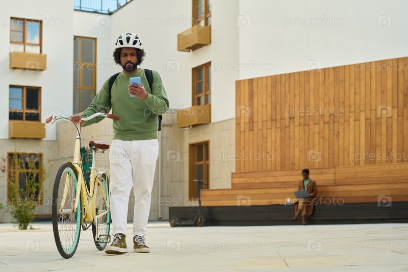Проверка телефона во время стояния на велосипеде