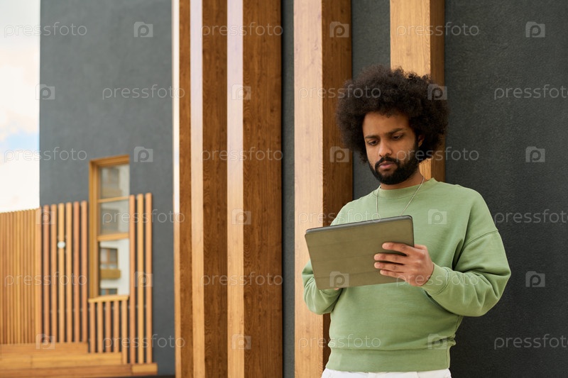 Использование планшета за пределами здания современного человека