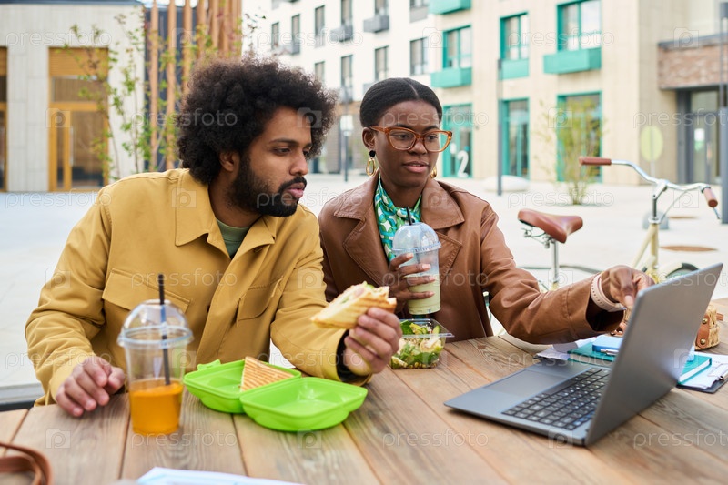 Сотрудничать на открытом воздухе, наслаждаясь обедом вместе