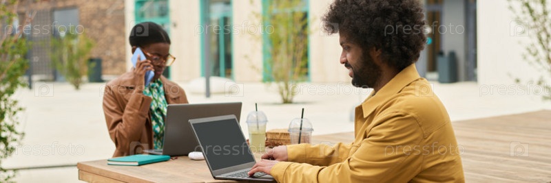 Сотрудничество на открытом воздухе с современными технологиями и гаджетами