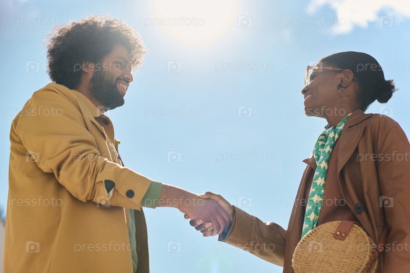 Мультиэтнические профессионалы пожали друг другу руки на открытом воздухе