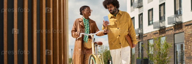 Обсуждение направления на городской улице с помощью планшета и карты