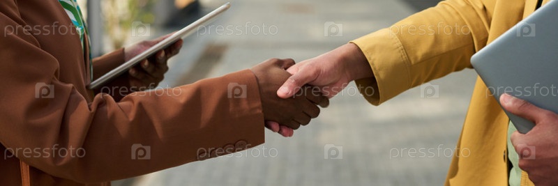 Ближайшее изображение бизнесменов, пожавших друг другу руки в знак согласия