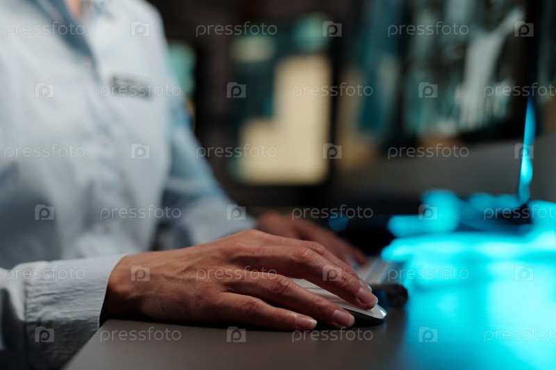 Рука охранника на компьютерной мыши