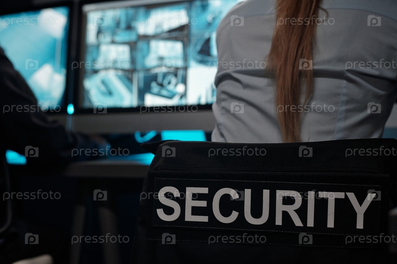 На спине черной формы охранника