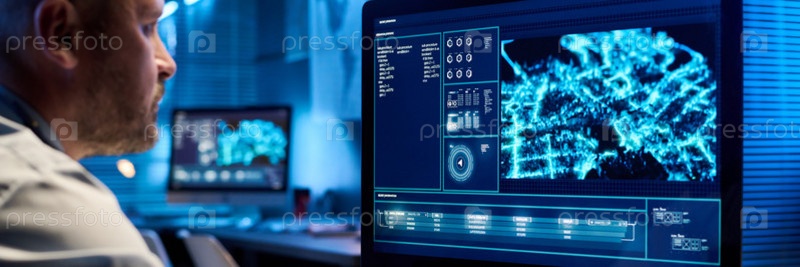 Зрелый офицер перед экраном