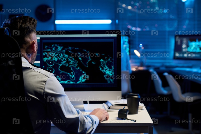 Офицер в форме использует компьютер