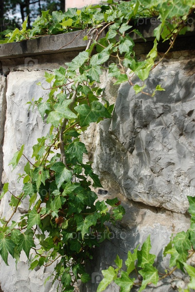 Ветки плюща на каменной стене