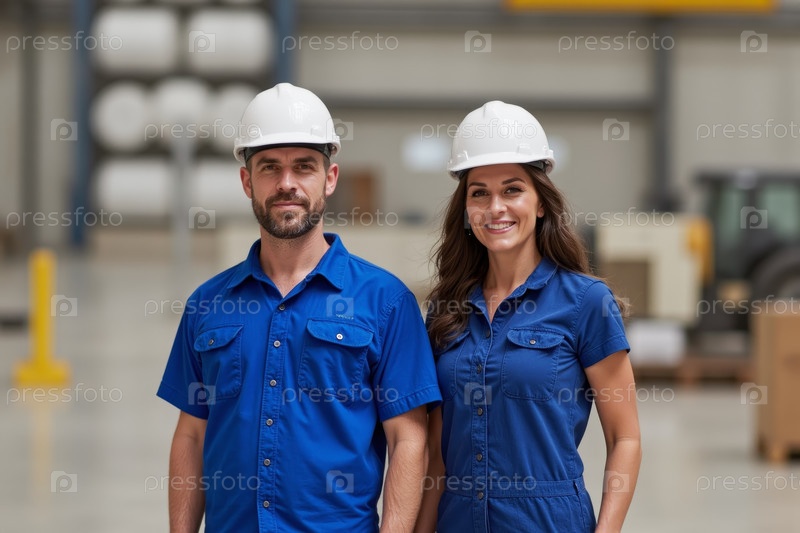 Два фабричных рабочих наслаждаются работой в производстве